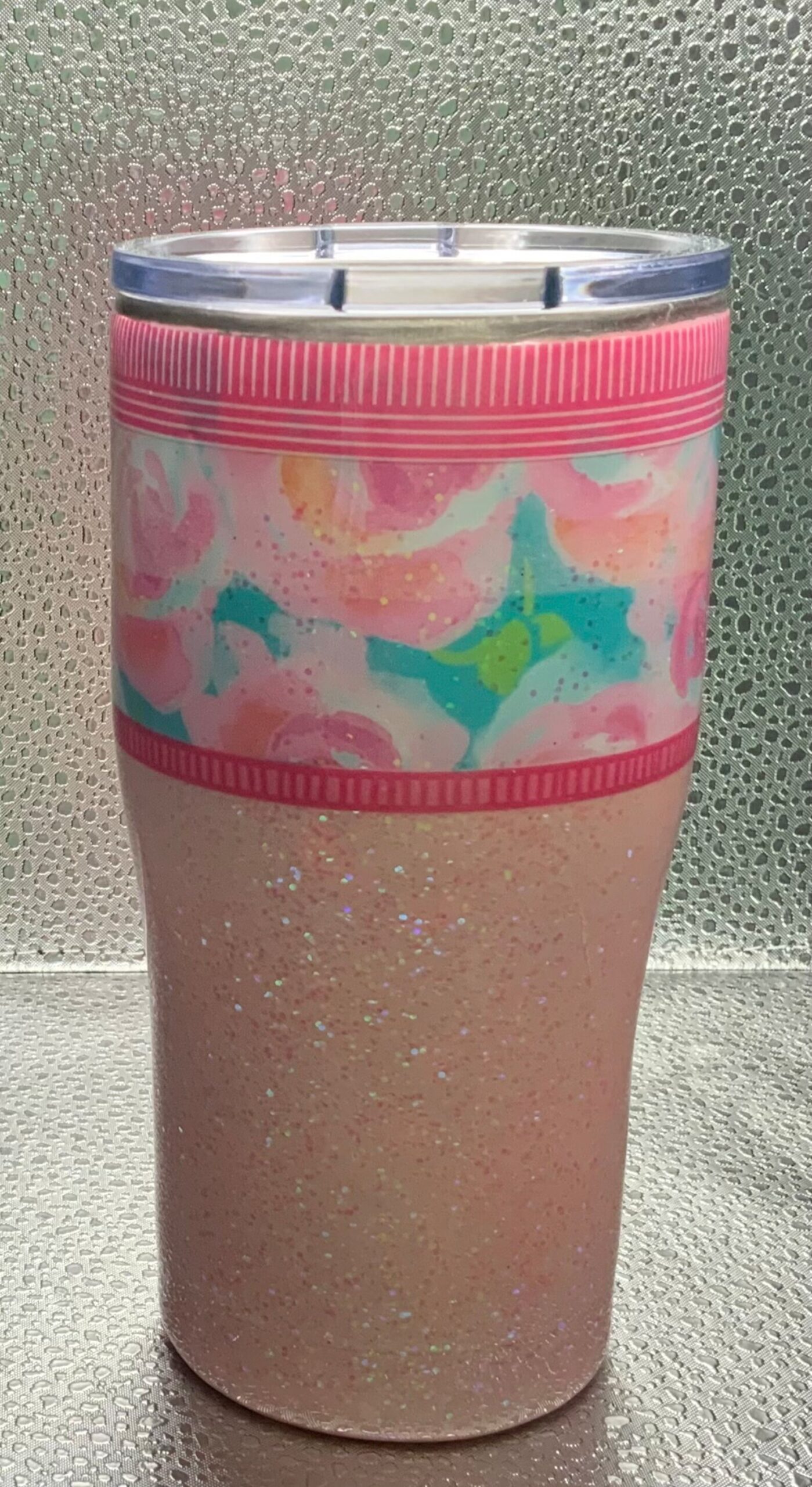 Another pretty in pink tumbler! This is a 20oz tumbler with pink sparkly glitter.